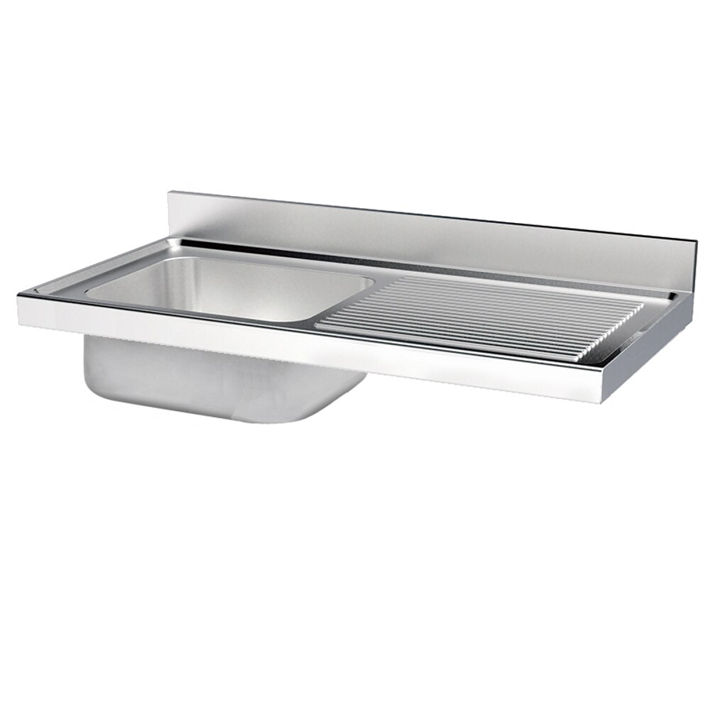 Spüle ohne rahmen 1 becken und 1 abtropffläche 600x500x300 - 1400x700x300 mm - 2110D156 Eurast