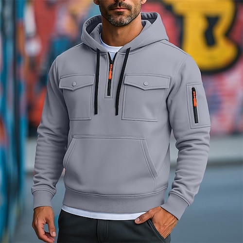Per uomo Felpa con cappuccio Felpa con cappuccio in pile Felpa con cappuccio tattica Felpa con cappuccio foderata in pile Nero Verde militare Cachi Grigio chiaro Grigio scuro Con Cappuccio Semplice