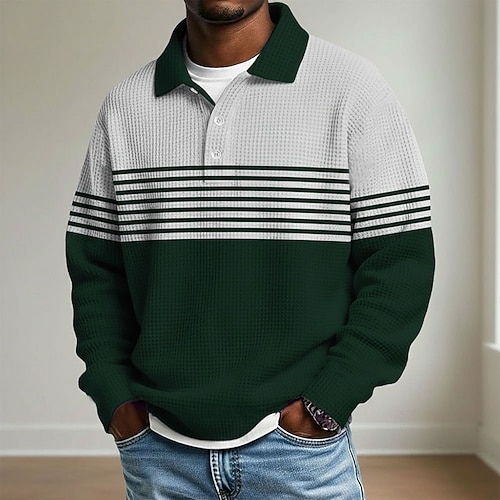 Per uomo Strisce orizzontali Magliette Polo a Nido d'Ape Polo da rugby Manica Lunga Magliette polo Bavero Abbigliamento Sportivo Casual Scuola Athleisure Abbigliamento quotidiano Stampa 3D Primavera