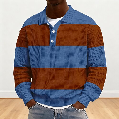Per uomo A righe Magliette Polo a Nido d'Ape Polo da rugby Manica Lunga Magliette polo Camicie con Colletto Casual Athleisure Abbigliamento quotidiano Bottoni Primavera Autunno Inverno Blu Nero Rosso