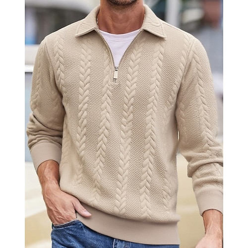Per uomo Polo Polo con zip a un quarto Casuale Vacanza Zip a un quarto Manica Lunga Moda Essenziale Semplice Jacquard Primavera Autunno Vestibilità regolare Nero Bianco Kaki Grigio Polo