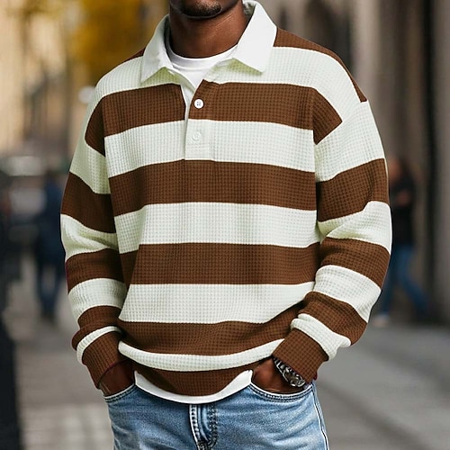 Per uomo Strisce orizzontali Polo da rugby Polo a maglia intrecciata Manica Lunga Magliette polo Camicie con Colletto Casual All'aperto Athleisure Abbigliamento quotidiano Stampa 3D Bottoni Primavera