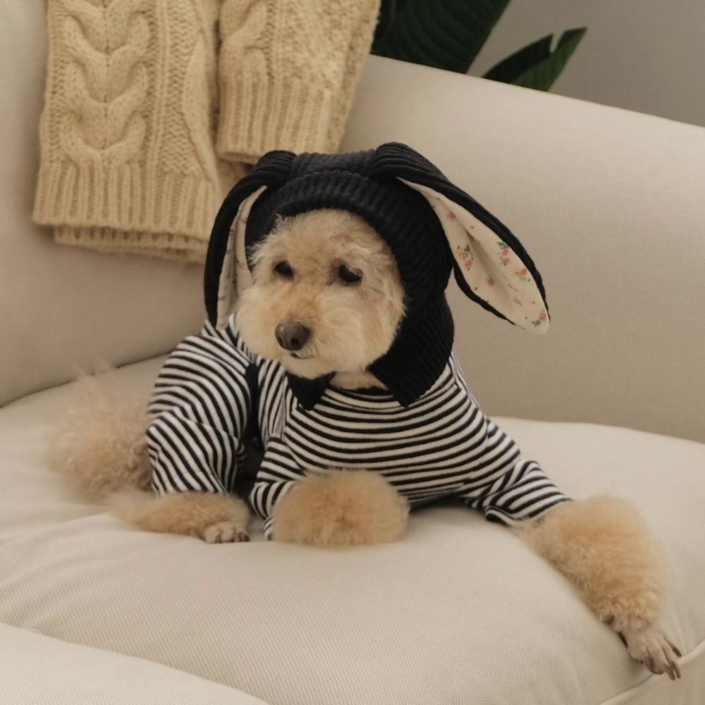 Cute Rabbit Ears Pet Hat Soft Elastic Floral Pattern Dog Windproof Cover Warm Comfortable Pet Headgear Small Medium Dog white