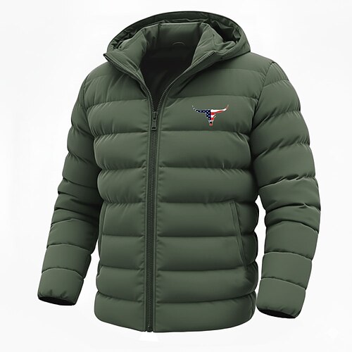 Per uomo Bandiera degli Stati Uniti Stampa Mucca Cappotto Invernale Giacca Piumino Giacca imbottita Calore Termico Impermeabile alla pioggia Leggero Casual All'aperto Quotidiano Giacca imbottita
