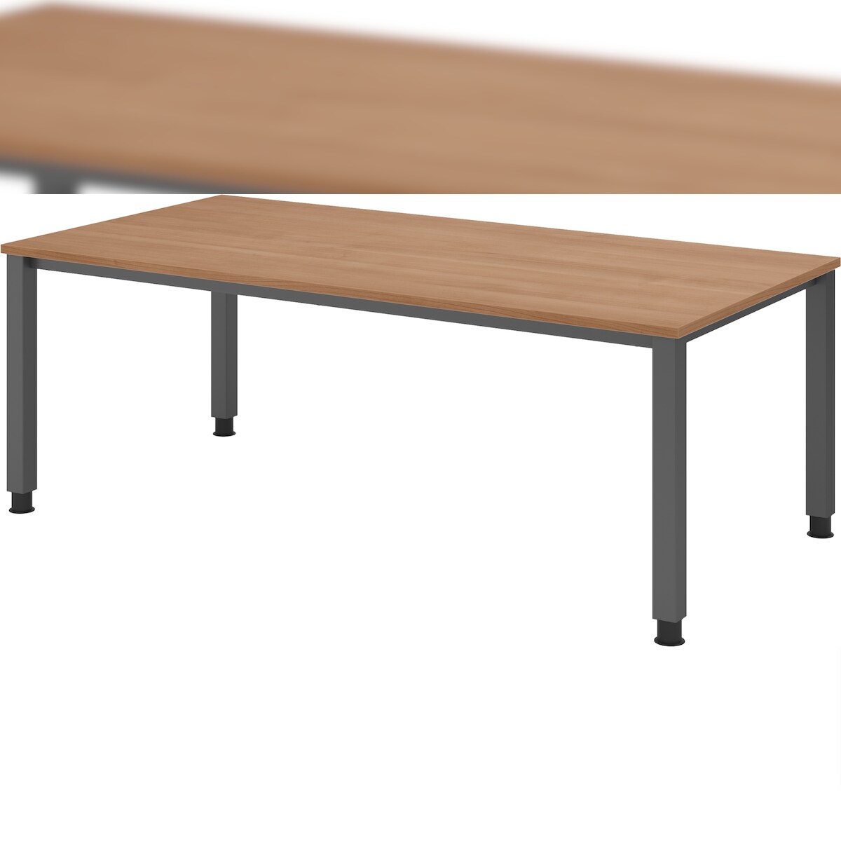 bümö manuell höhenverstellbarer Schreibtisch 200x100 cm in Nussbaum, Metall-Gestell: Graphit - PC Tisch höhenverstellbar & belastbar bis 140 kg,