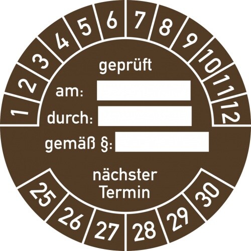 Dreifke® Prüfplakette geprüft am: durch:... 2025 - 2030, Folie, Ø 40 mm, 10 Stück/Bogen