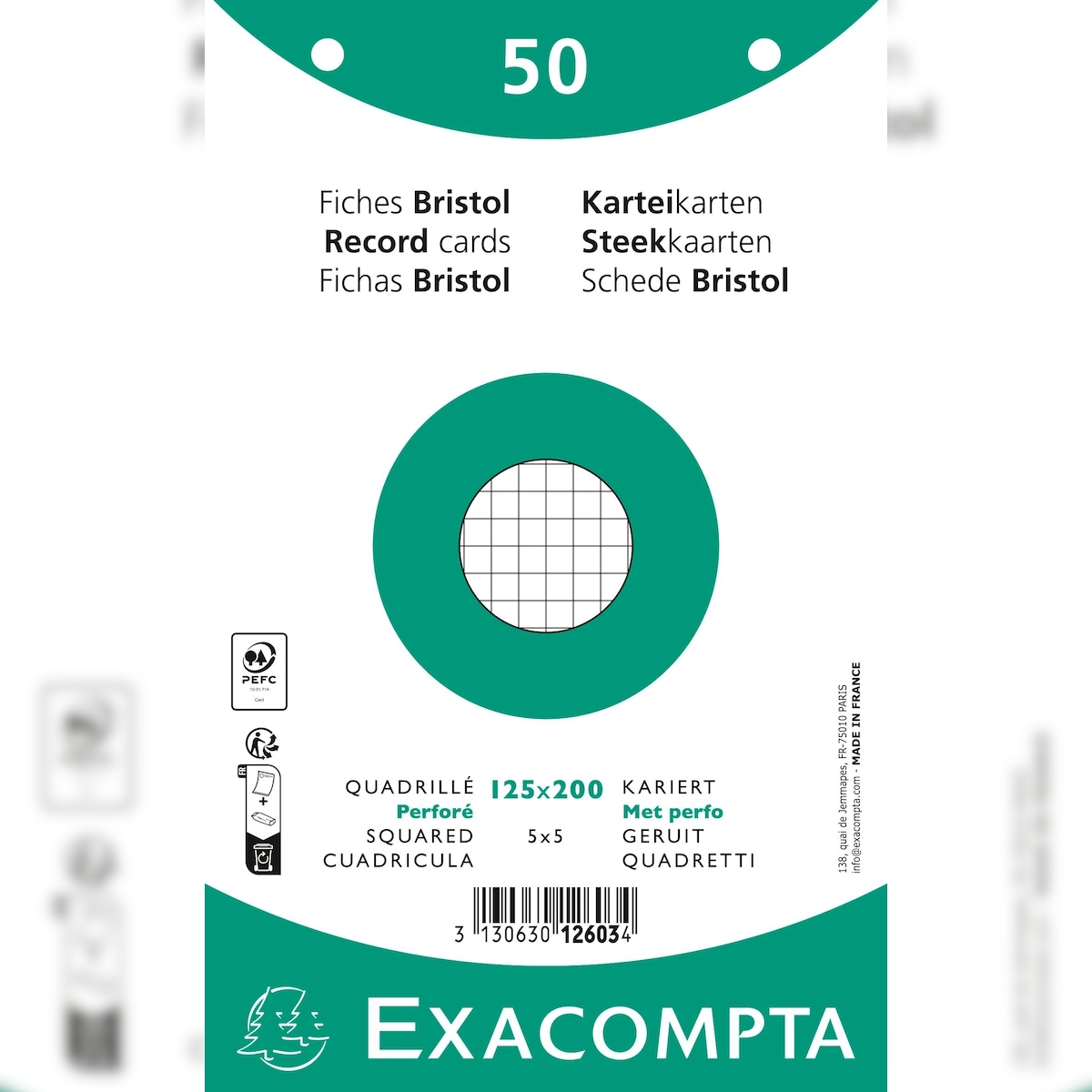 Exacompta 12603E 24x Karteikarten 50er 125x200 kariert perforiert weiss