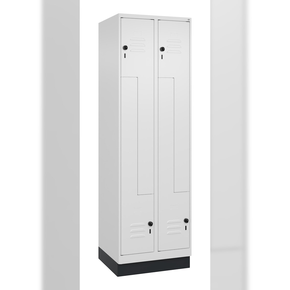 C+P Z-Spind Classic PLUS, Sockel, 4 Abteile, HxBxT 195x60x50cm, Sicherheitsdrehriegel, Verkehrsweiß von PROREGAL