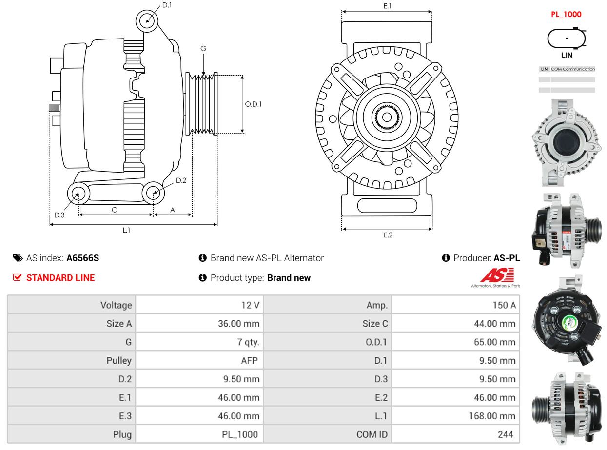 AS-PL Generator A6566S 12V 150A für HONDA 31100-R3L-G01 CSJ65