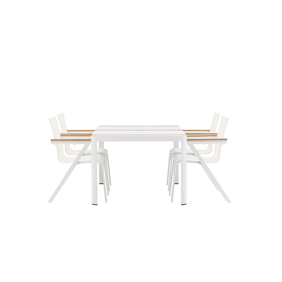 Ebuy24 Togo Gartenset Tisch 90x150cm weiß, 4 Stühle weiß.