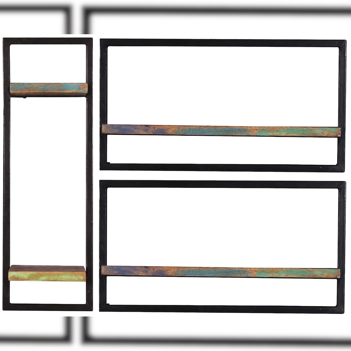 SIT Möbel Wandregal-Set | 3-teilig | Altholz | Serie RIVERBOAT | B 95 x T 25 x H 75 cm | bunt