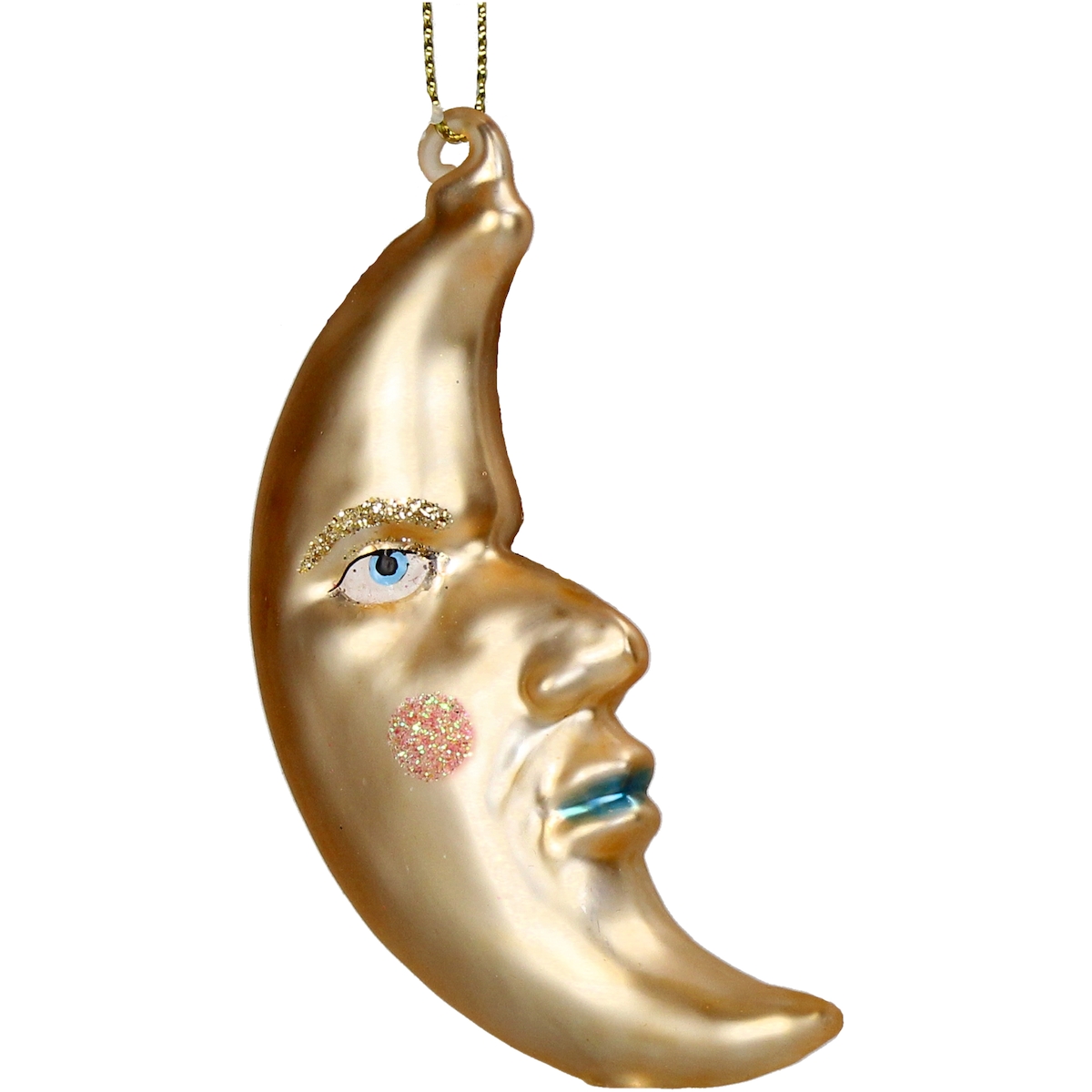 Christbaumschmuck Glas 9,5cm Mondfigur Kugeln Weihnachtsbaum Anhänger Weihnachten Christbaumanhänger Weihnachtsbaumschmuck Gold