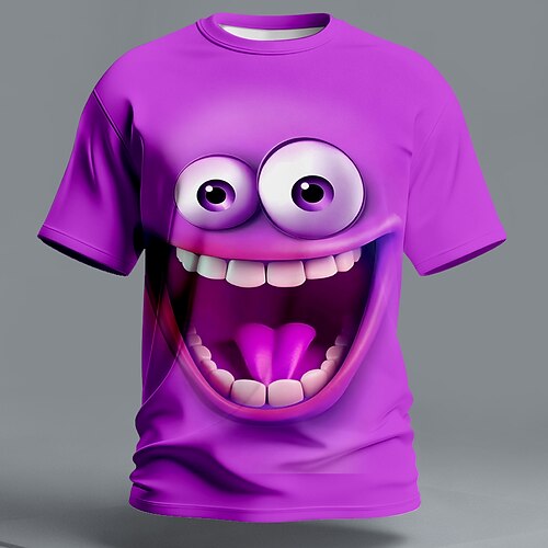 Maglietta grafica divertente con faccina gialla che ride per uomo, stampa 3D con grande bocca aperta, maglietta casual da uomo con design umoristico, abbigliamento a maniche corte, s m l xl xxl xxxl