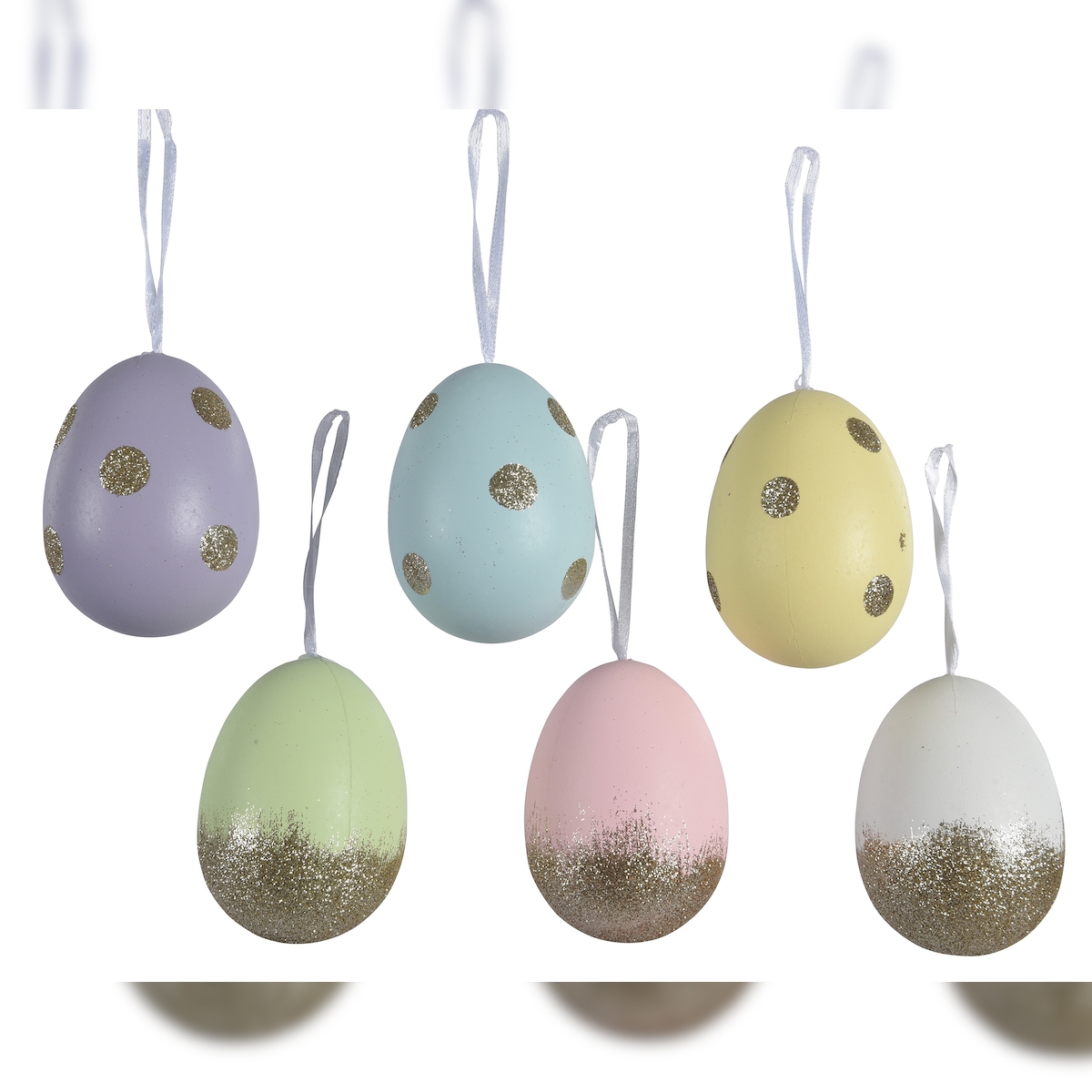 Decoris 6 Ostereier zum Aufhängen 9cm Plastikeier Kunststoffeier Osterdeko Pastell Mix Kunststoff Deko Eier Glitzer Hängend Hängedeko Frühlingsdeko Bruchfest