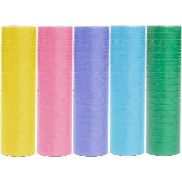 5 Rollen Luftschlangen pastell gelb rosa hellblau flieder grün | schwer entflammbar