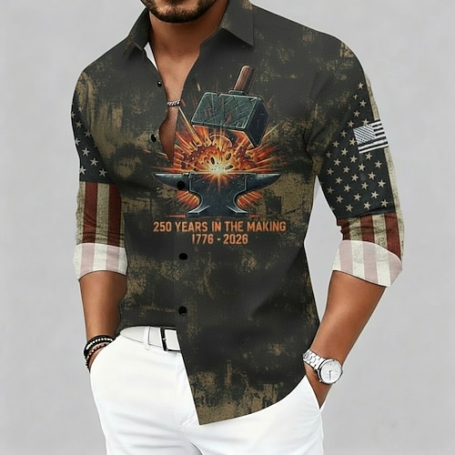Giorno dell'Indipendenza Americana Per uomo Grafico Bandiera Americana Camicia Camicia button-down Camicie hawaiane Manica Lunga Vintage Casual Spiaggia All'aperto Vacanza Ferie Primavera Autunno