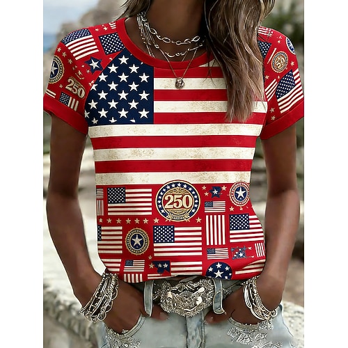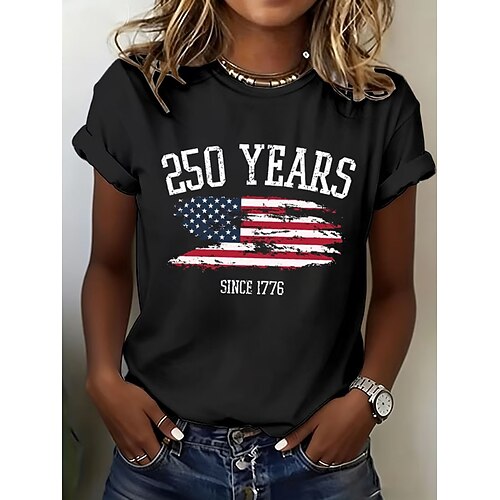 Maglietta patriottica per il Giorno dell'Indipendenza 250esimo anniversario americano Maglietta da donna grafica con bandiera vintage elegante casual maniche corte girocollo top regolari quotidiani
