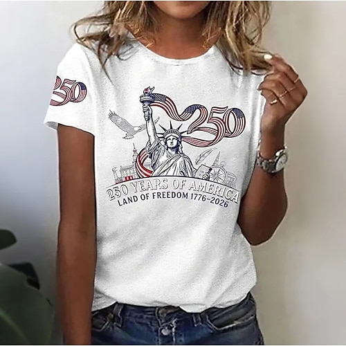 Giorno dell'Indipendenza Americana Per donna Maglietta Stampato Grafico Lettera Bandiera Americana Elegante Classico Casual Manica Corta Girocollo Top Regolari Quotidiano Bianco Estate Primavera