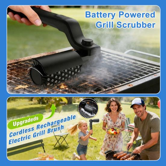 Sladdlös elektrisk grillborste Uppladdningsbar grillrengörare 3-stegs justerbart rostfritt stålhuvud Fettborttagande BBQ-borste för utomhusmatlagning
