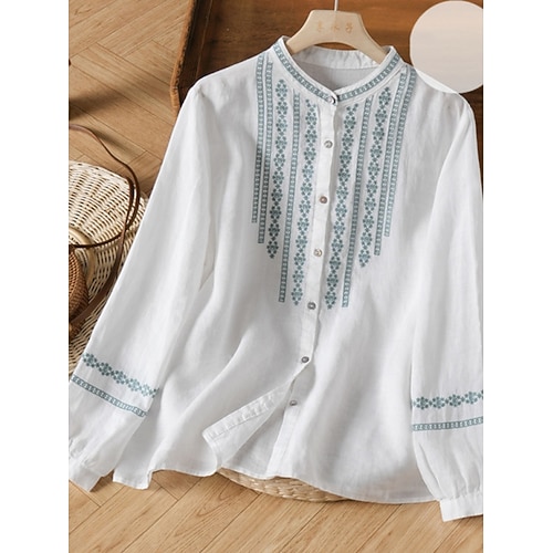 Per donna Blusa Tinta unica Elegante Casual Manica Lunga Collo alla coreana Top Regolari Quotidiano Ricamato Bianco Rosa Blu marino Arancione Primavera Autunno