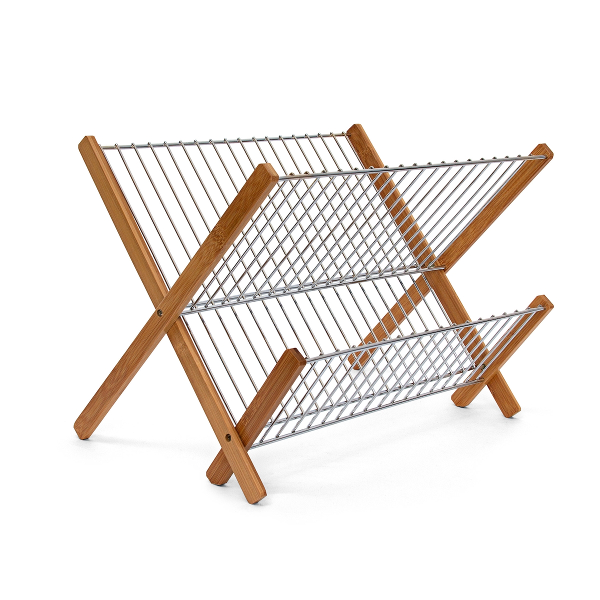 Relaxdays Abtropfgestell CROSS, zum Klappen, für Teller, Tassen, Bambus, Metall, Abtropfständer, 27 x 39 x 29 cm, natur