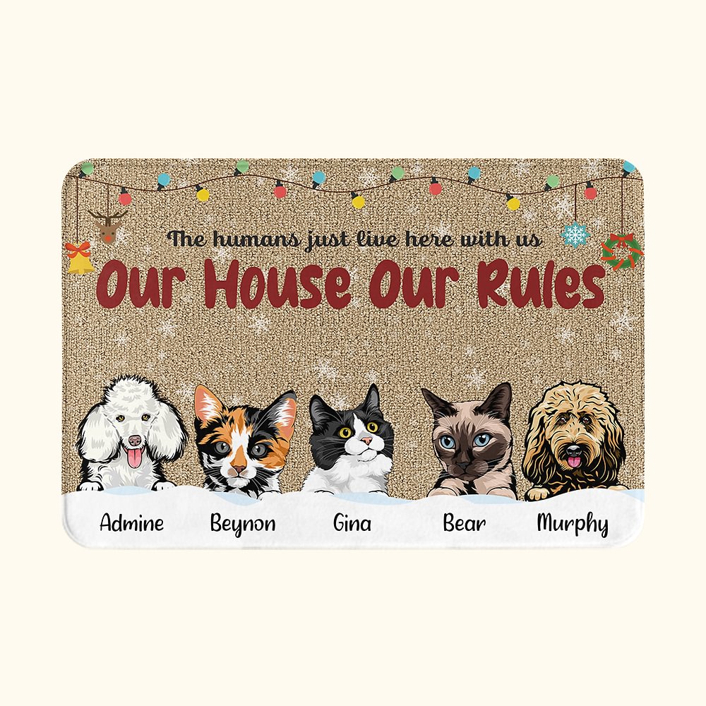 Alfombrilla de puerta personalizada Our House Our Rules Funny Pet Door Mat Birthday Christmas Gift for Dog Cat Pet Lovers