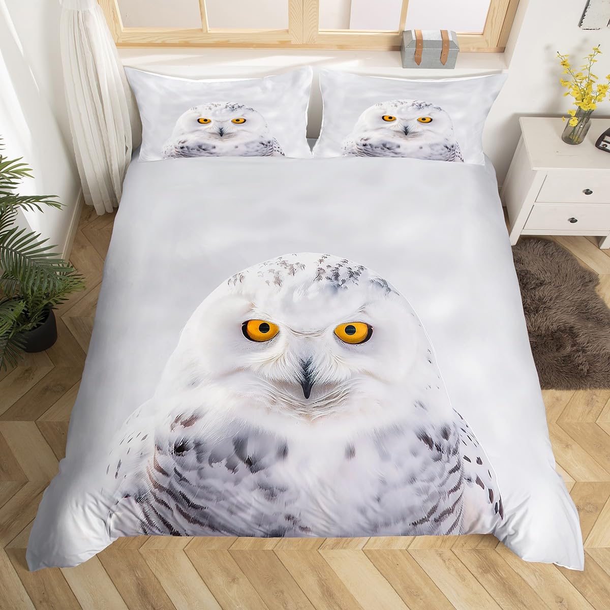 White Owl Bedding Set Cute Bird Decor Duvet Cover 3D Animal Printed Comforter Cover for Boys Girls Children Teens Bedroom Decor