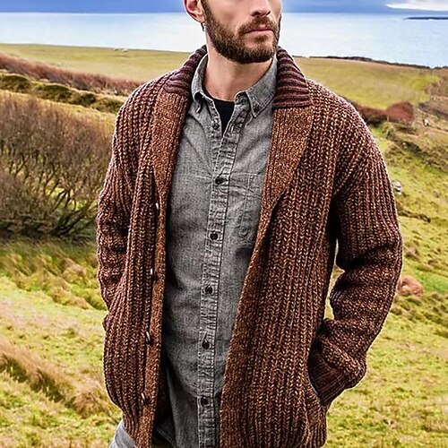 Per uomo Felpa Maglione elegante Cardigan A Coste Treccia Maglia Top Regolari Lavorato a maglia Semplice Collo a scialle Vacanza Moda Casuale Abbigliamento quotidiano Abbigliamento Primavera Autunno