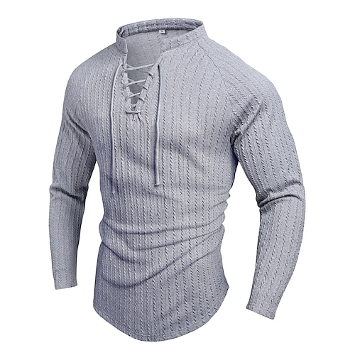 Per uomo Maglietta Maglietta a Maglia a Coste Manica Lunga Allacciato al collo Inverno Primavera Autunno Autunno Inverno Tinta unica Maglieria Quotidiano Casual Allacciato Stile Vintage