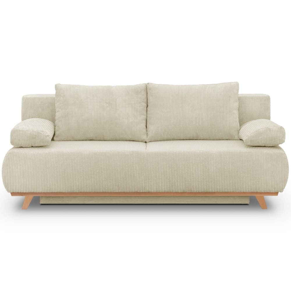 Canapé convertible 3 places velours côtelé beige avec coffre