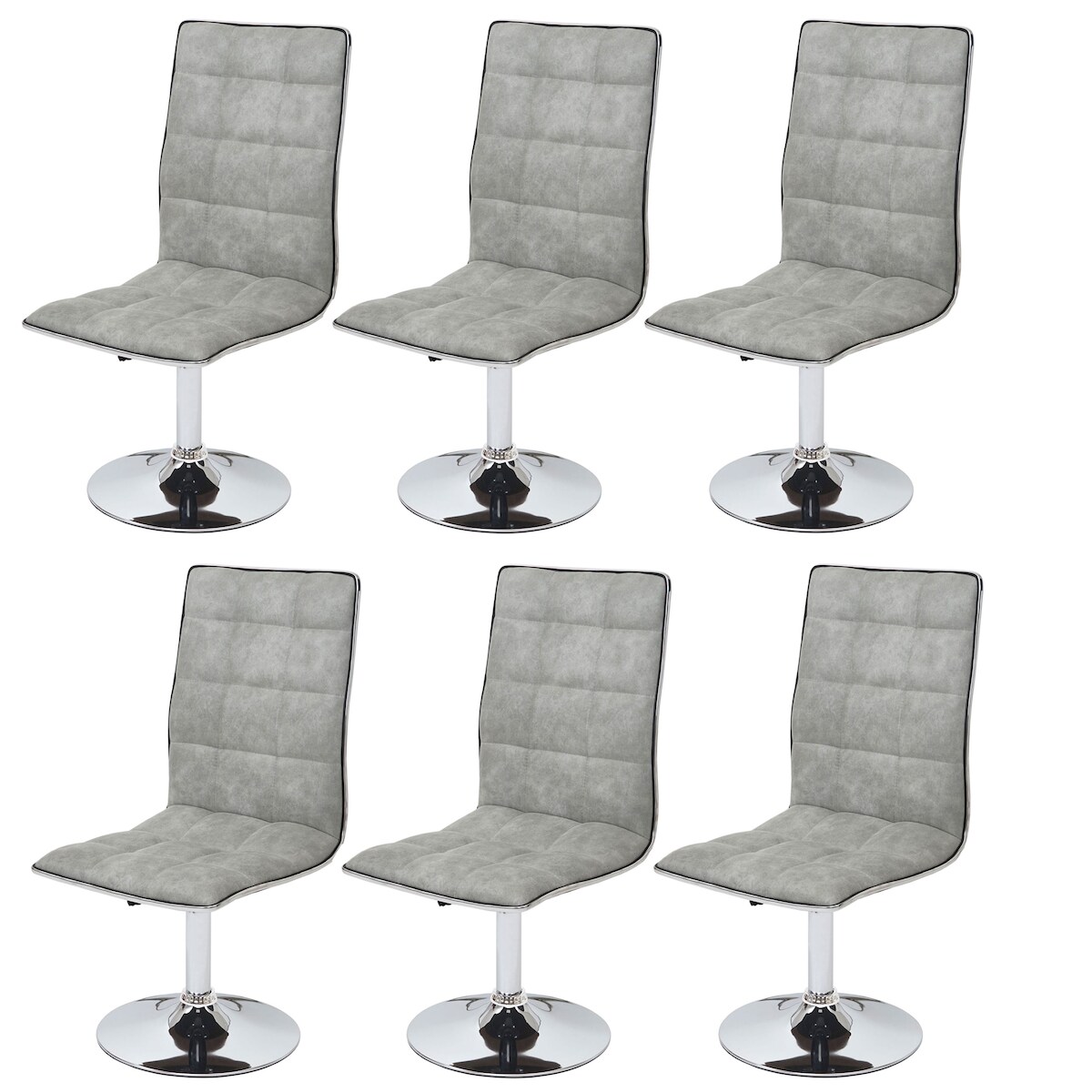 Mendler 6er-Set Esszimmerstuhl HWC-C41, Stuhl Küchenstuhl, höhenverstellbar drehbar, Stoff/Textil FSC® ~ vintage betongrau