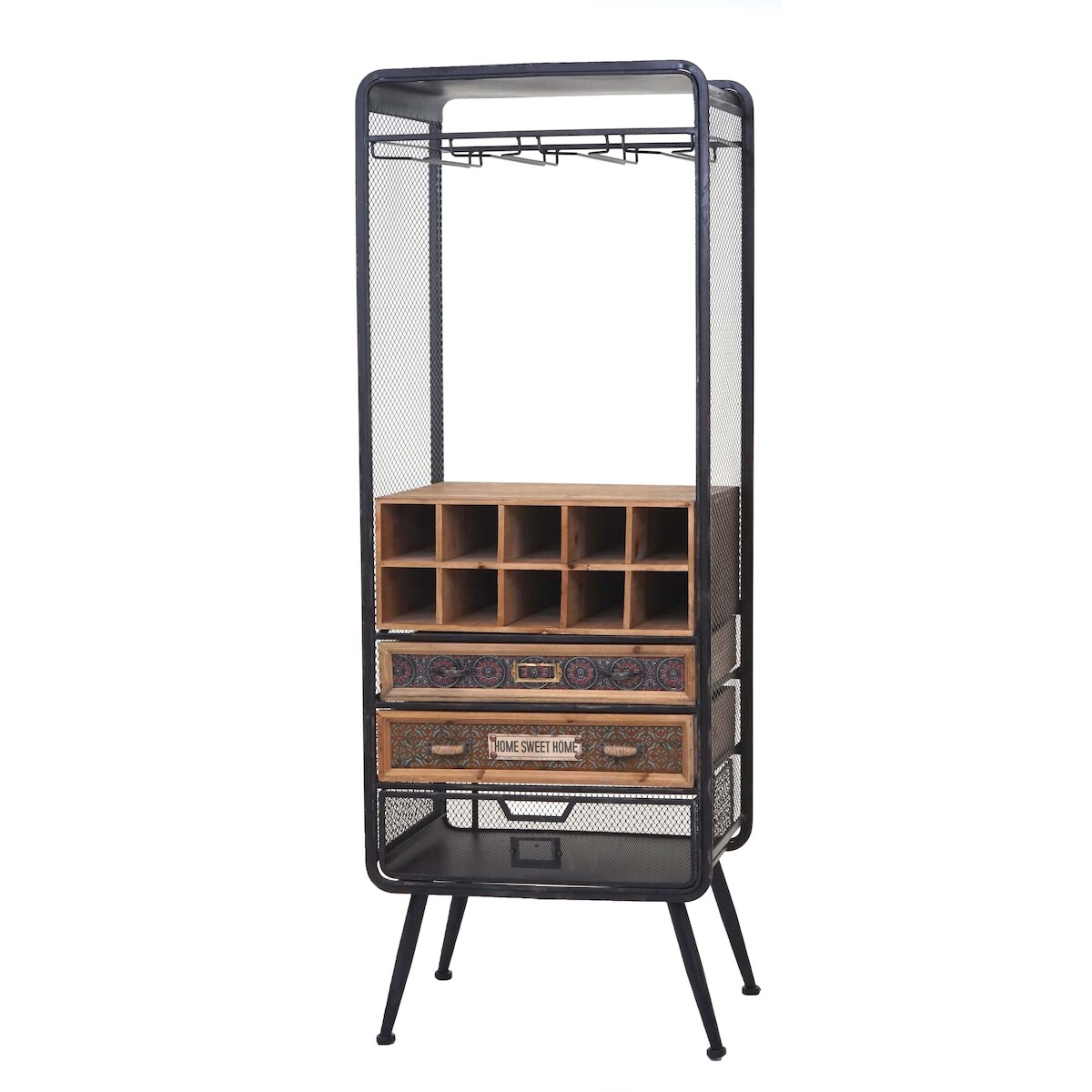 Mendler Weinregal HWC-C91, Flaschenregal Barschrank Weinständer für 10 Flaschen, Tanne Holz Vintage 157x57x38cm