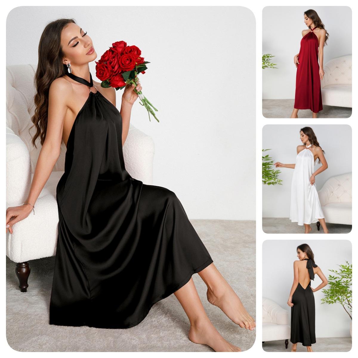Robe de nuit à dos nu en satin avec décolleté plongeant, longue, fluide, multicolore, sexy, pour femme, confortable, vêtements d'intérieur 888, élégan