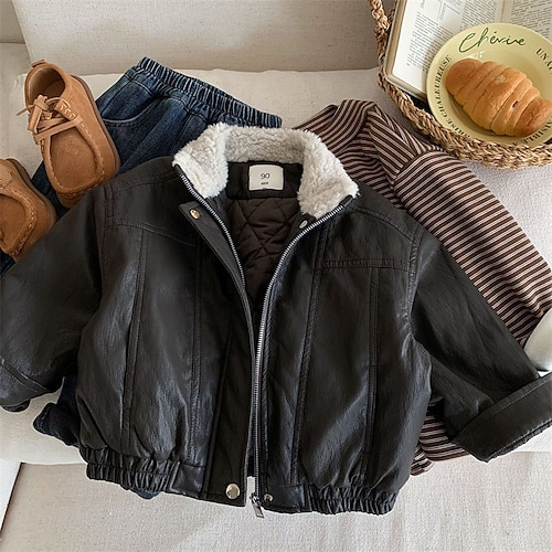 Bambini Ragazzi Giacca in pelle nera Giubbino e cappotto Capispalla Tinta unica Manica Lunga Tenere al caldo Antivento Cappotto All'aperto Streetwear Casual Marrone Autunno Inverno Dai 4 anni in su