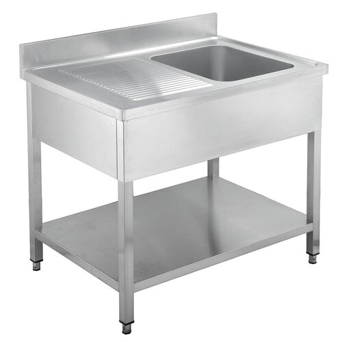 VM Europa Edelstahl Spültisch 1 Becken rechts, mit Grundboden, mit Aufkantung, Eco - zur selbstmontage: 100 x 70 cm / mit Aufkantung / selbstmontage