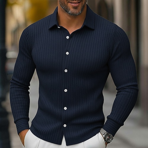 Per uomo Camicia Maglia a coste Camicia casual Camicia con colletto alla coreana Camicia con Bottoni Bianco Blu marino Grigio Azzurro Manica Lunga Semplice Colletto Casuale Quotidiano Abbigliamento