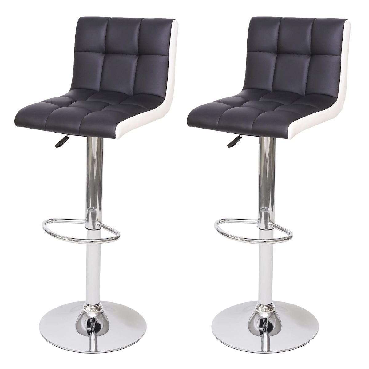 Mendler 2er-Set Barhocker HWC-G87, Tresenhocker Barstuhl, höhenverstellbar ~ Kunstleder schwarz-weiß, Chromfuß