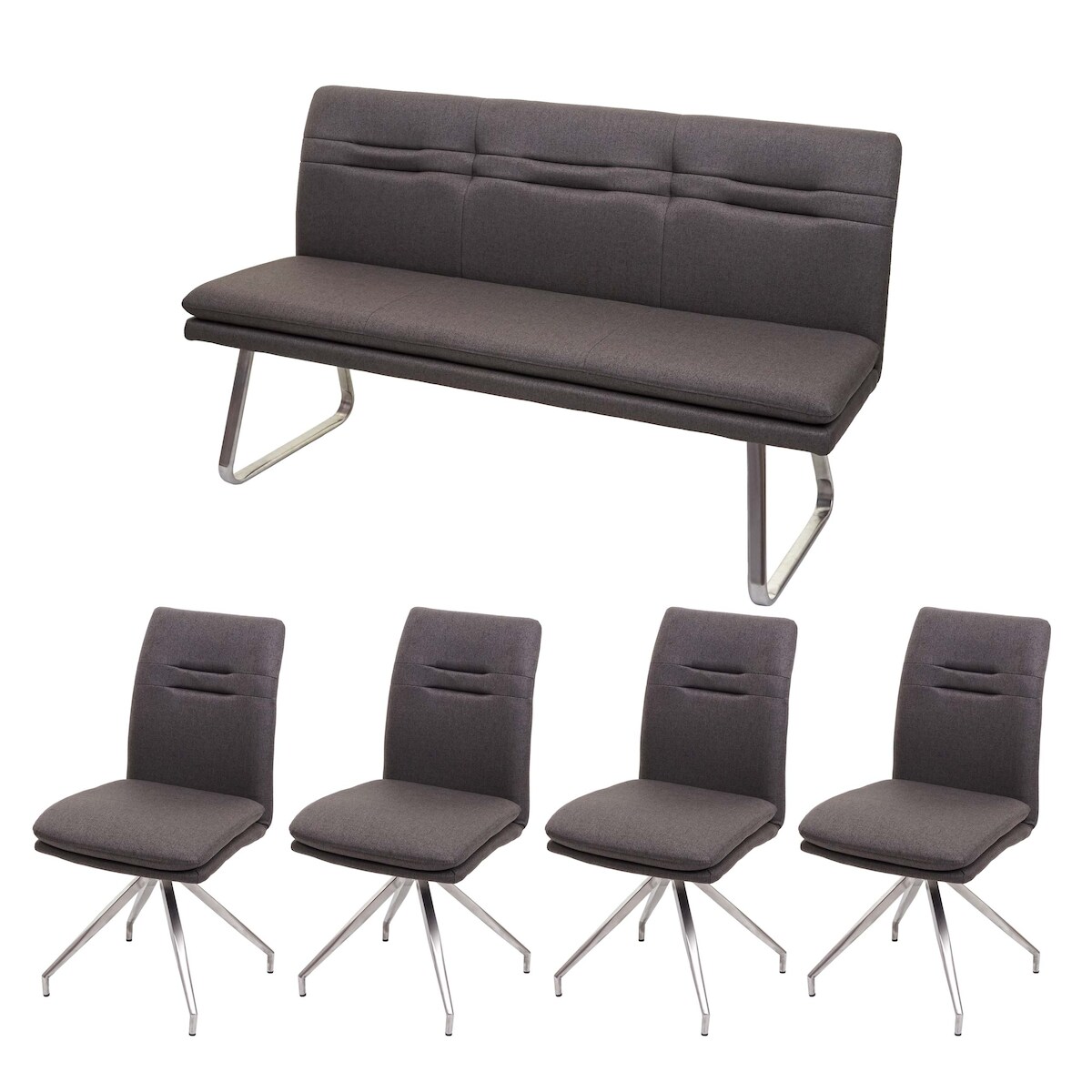 Mendler Esszimmer-Set HWC-H70, Sitzgruppe Esszimmergruppe Esszimmergarnitur, Stoff/Textil Edelstahl gebürstet ~ grau-braun 160cm