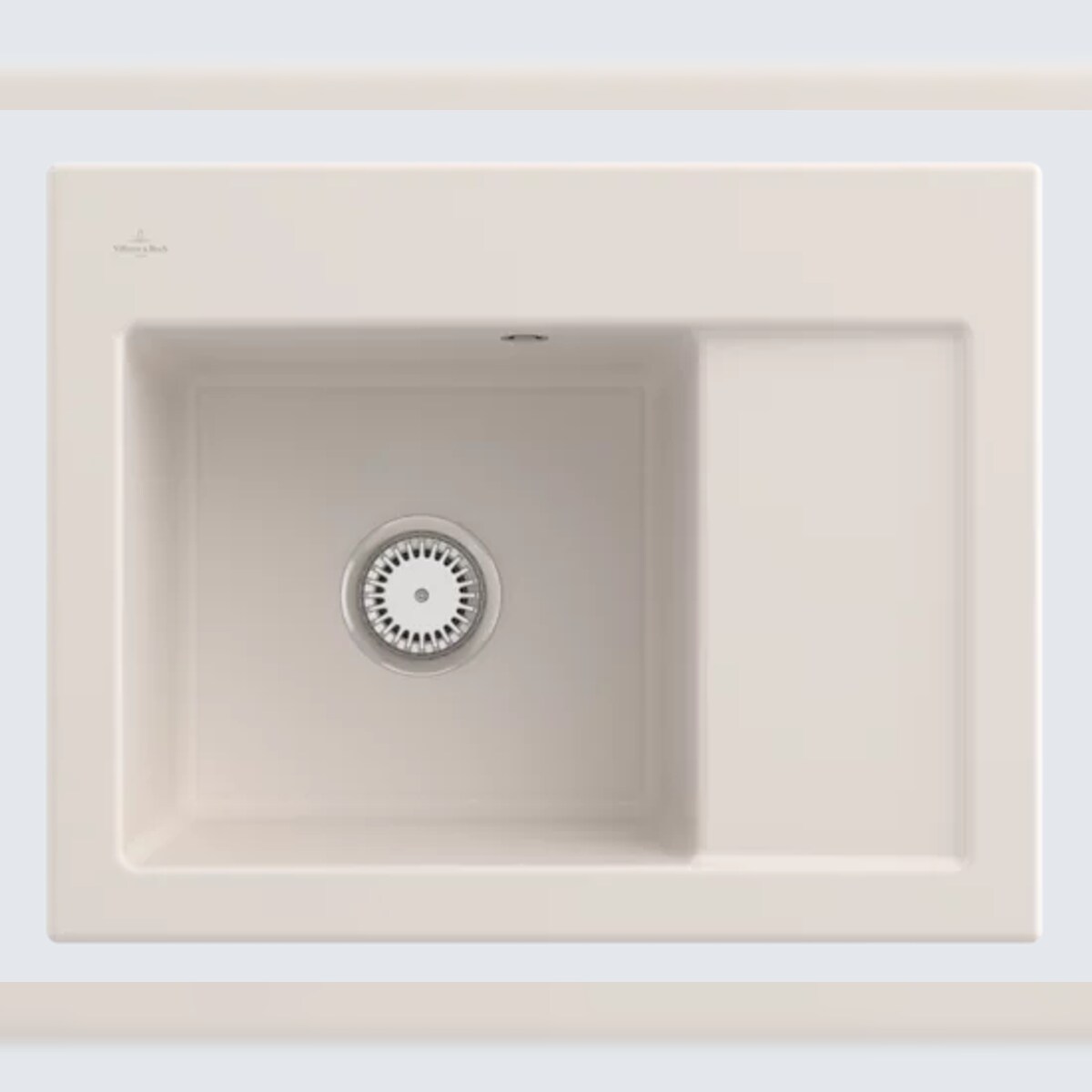 Villeroy und Boch Subway 45 Compact Einbauspüle 331201FU links, mit Ablaufgarnitur, Handbetätigung, 650 x 510 mm, ivory CeramicPlus