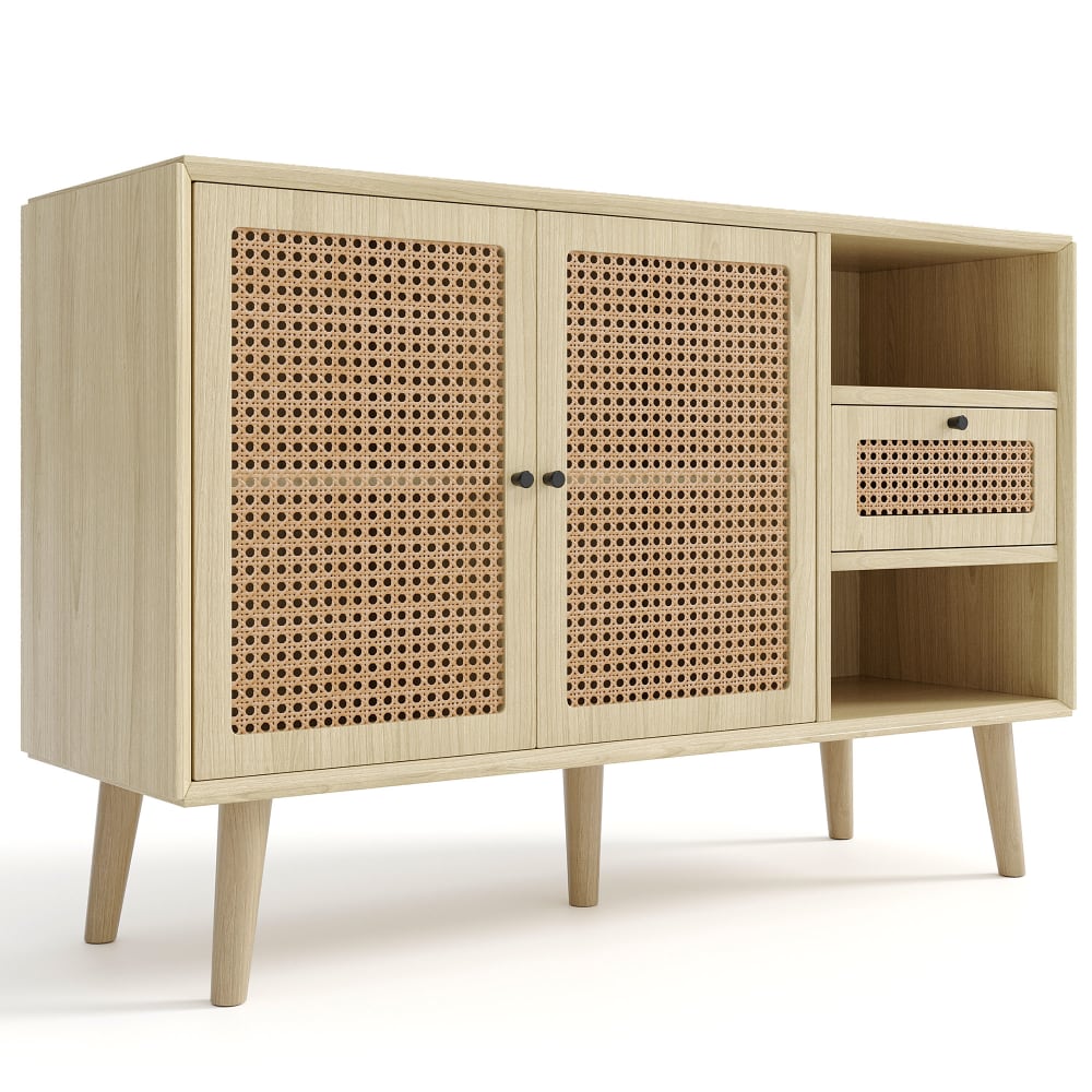 Credenza in rattan effetto legno di quercia con 1 cassetto e 2 ante