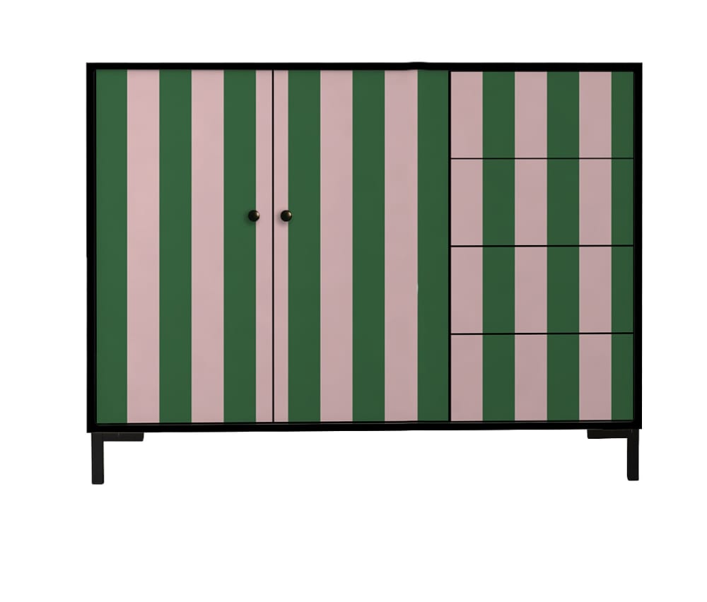 Credenza bassa 2 ante 4 cassetti effetto legno stampa