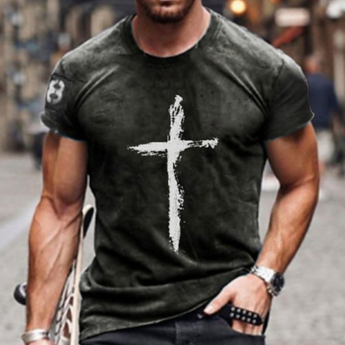 Per uomo Croce Maglietta Maglietta consumata Manica Corta maglietta Girocollo Camicia Vintage Designer Essenziale Casuale Quotidiano Weekend Blu Rosso Grigio scuro Estate Abbigliamento Taglie Forti S
