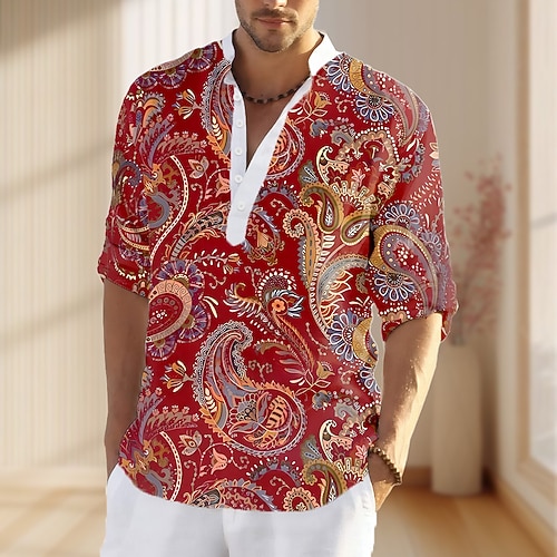 Per uomo Paisley Stampa Maglietta Maglia Henley Manica Lunga Designer Retrò Vintage Casual Streetwear Casuale Quotidiano Estate Primavera Autunno Rosso Blu Henley Maglietta Henley