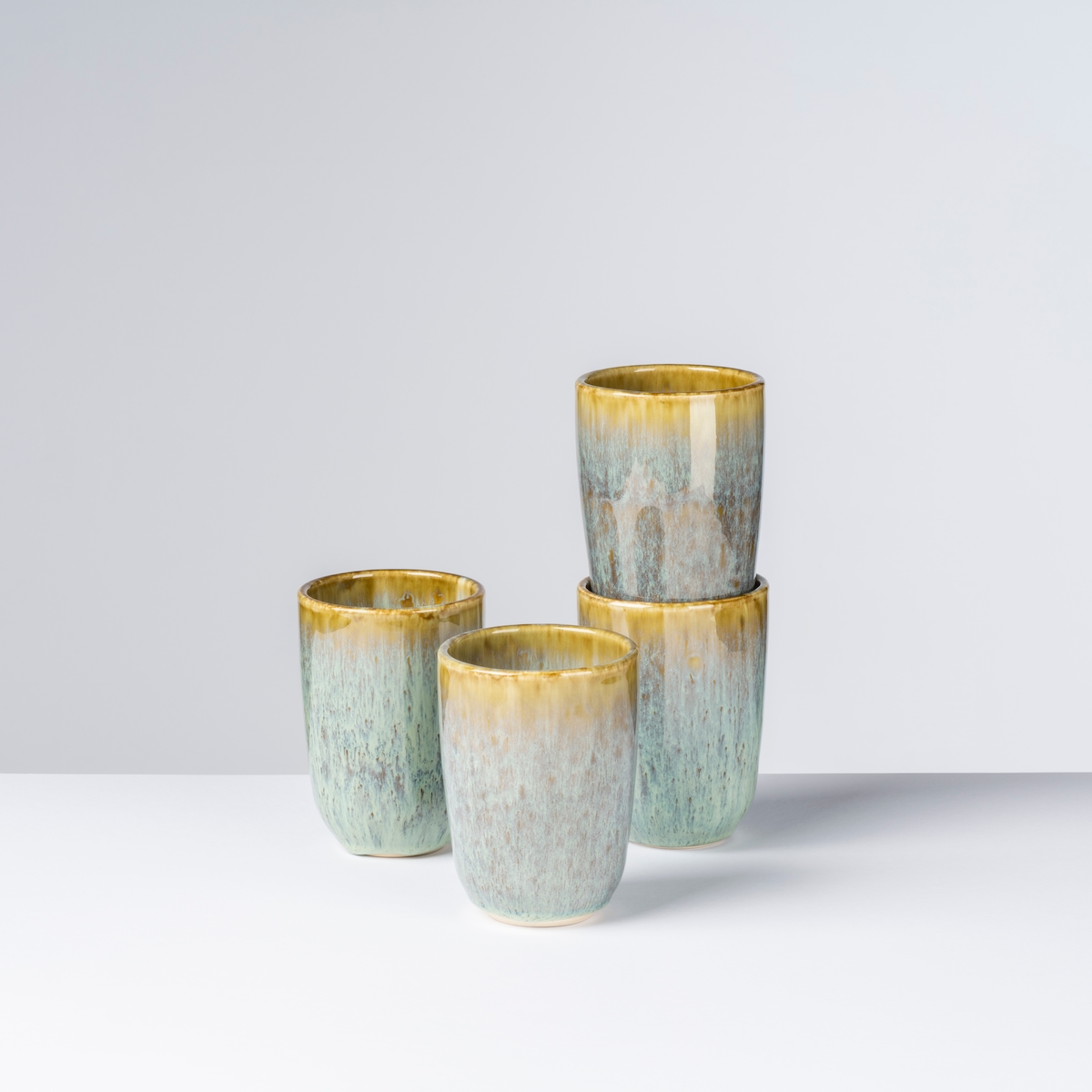 Gipfelstück Kaffeebecher ohne Henkel 350 ml mit braunem Rand 4er-Set, postsicher, Serie FLUSSUFER
