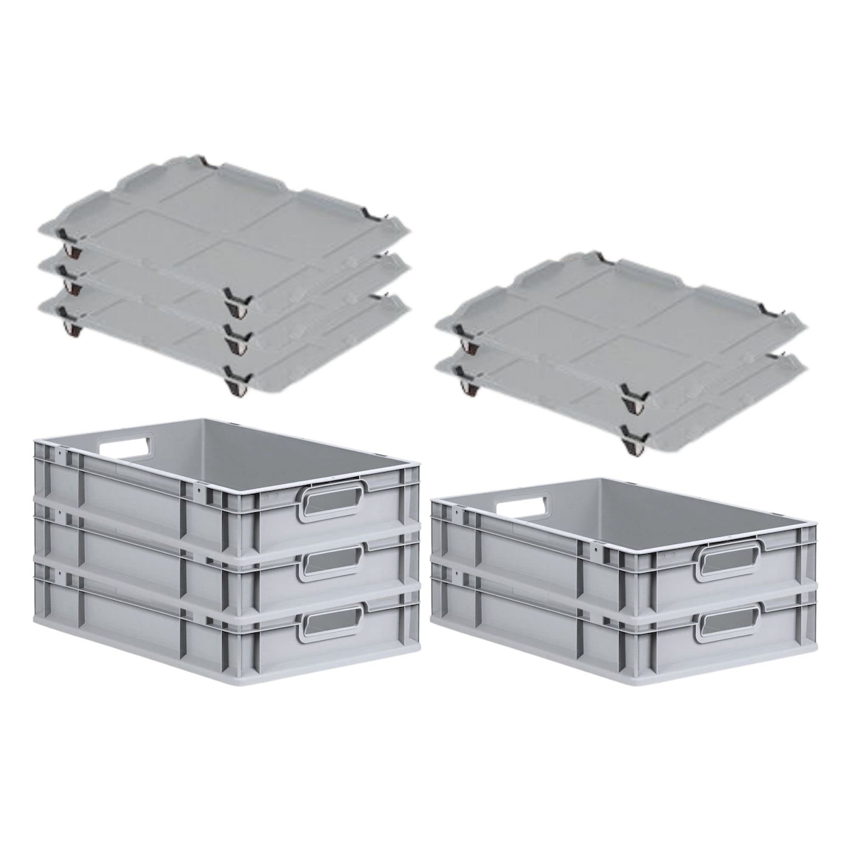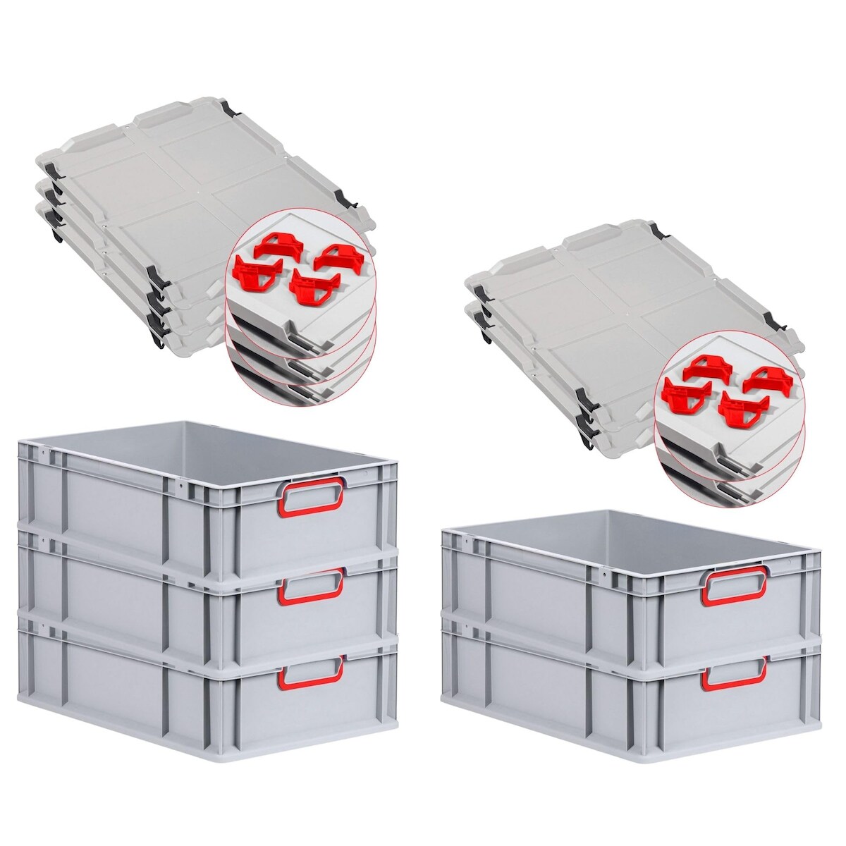 PROREGAL SparSet 5x Eurobox NextGen Economy mit Auflagedeckel & 4x Verschlüsse Schwarz, Griffe offen, HxBxT 12x40x60cm, 23L, Eurobehälter, Box