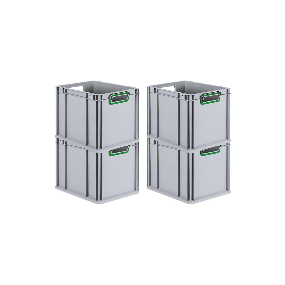 PROREGAL SuperSparSet 4x Eurobox NextGen Color, HxBxT 32x30x40cm, 30 Liter, Griffe grün offen, Grau, Eurobehälter, Box, Transportbehälter