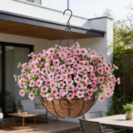Iron Hanging Flower Pot Balcony Planter with Detachable Hook Solid Color Herb Pot pink