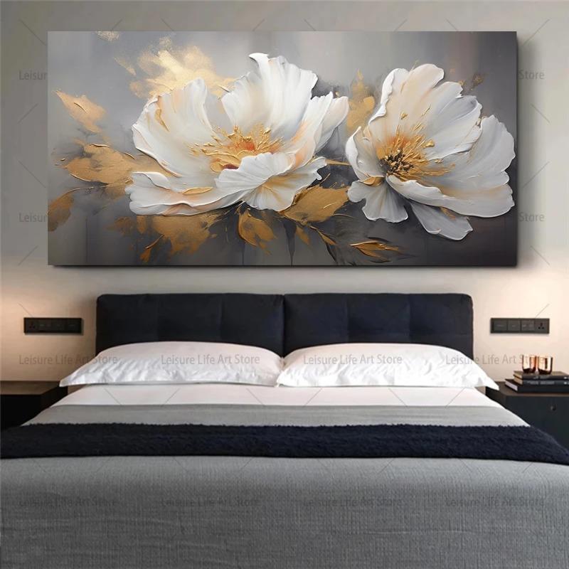 Moderne Hvite Blomster Lerret Maleri Abstrakte Blomster Planter Blader Plakater Blomstertrykk for Stue Veggdekor Uten Ramme