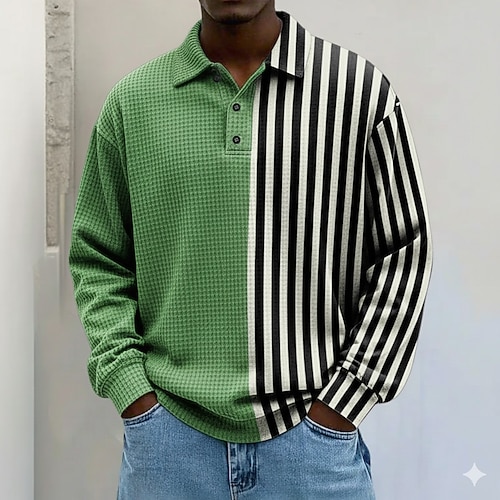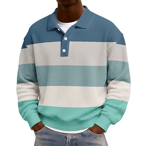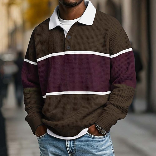 Per uomo Strisce orizzontali Magliette Polo a Nido d'Ape Polo da rugby Testurizzato Manica Lunga Magliette polo Bavero Abbigliamento Sportivo Casual Scuola Athleisure Abbigliamento quotidiano Stampa