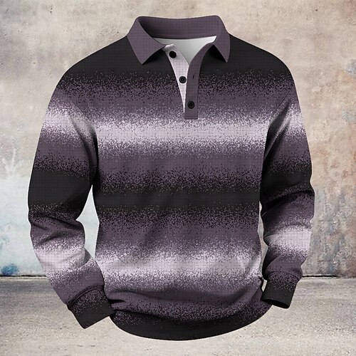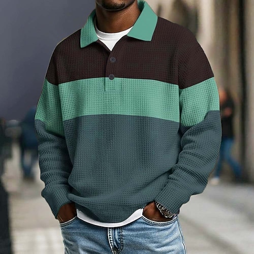 Per uomo A righe Magliette Polo a Nido d'Ape Polo da rugby Manica Lunga Magliette polo Camicie con Colletto Casual Athleisure Abbigliamento quotidiano Bottoni Primavera Autunno Inverno Blu Viola Verde
